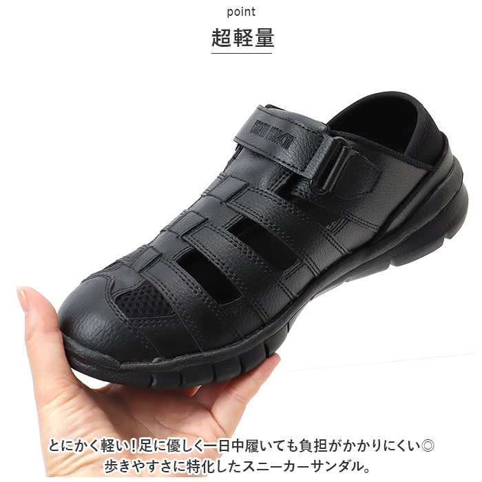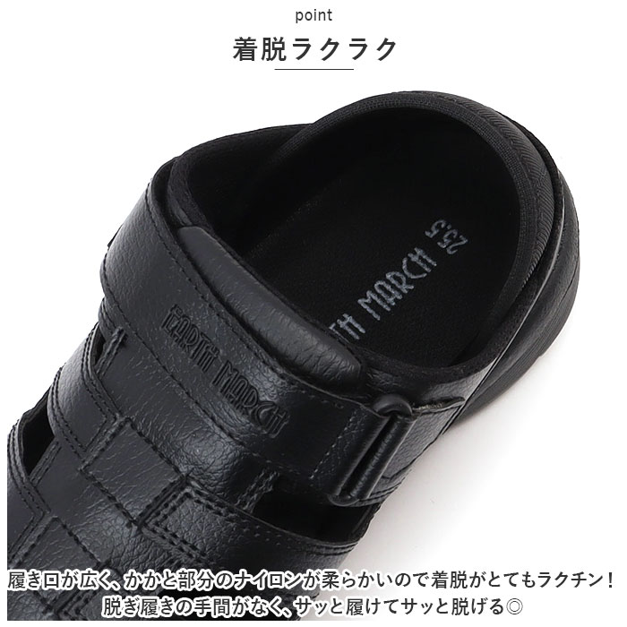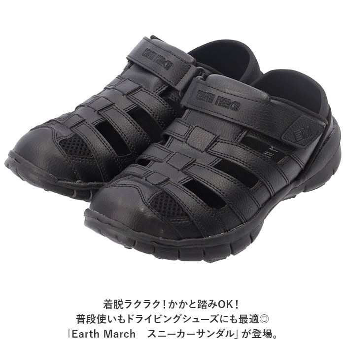 | 商品説明 | 着脱ラクラク!かかと踏みOK!普段使いもドライビングシューズにも最適◎「Earth March スニーカーサンダル」が登場。【超軽量】とにかく軽い!足に優しく一日中履いても負担がかかりにくい◎歩きやすさに特化したスニーカーサンダル。【かかと踏みOK】かかと部分はナイロン仕様なので、かかと踏みOK!かかとありでスニーカーサンダル、かかと踏みでつっかけサンダルの2WAYで使える優れモノ!【通気性◎】つま先はメッシュ仕様で風通し良好。靴内のムレを防ぎ、暑い季節も快適さを維持。【着脱ラクラク】履き口が広く、かかと部分のナイロンが柔らかいので着脱がとてもラクチン!脱ぎ履きの手間がなく、サッと履けてサッと脱げる◎【サイズの微調節可能】甲部分は面ファスナータイプ。甲部分にゴムを使用しているので、サイズの微調節ができ、足にフィットさせることも可能。【ドライビングシューズにも】楽な履き心地と軽量設計、脱ぎ履きが簡単なので、ドライビングシューズに最適。長時間の運転も足元はリラックス。快適なドライブを♪ |