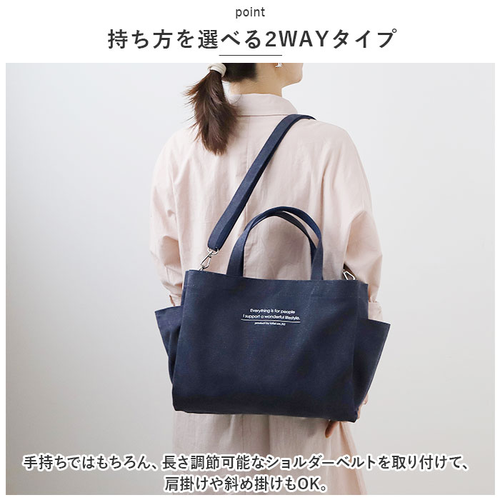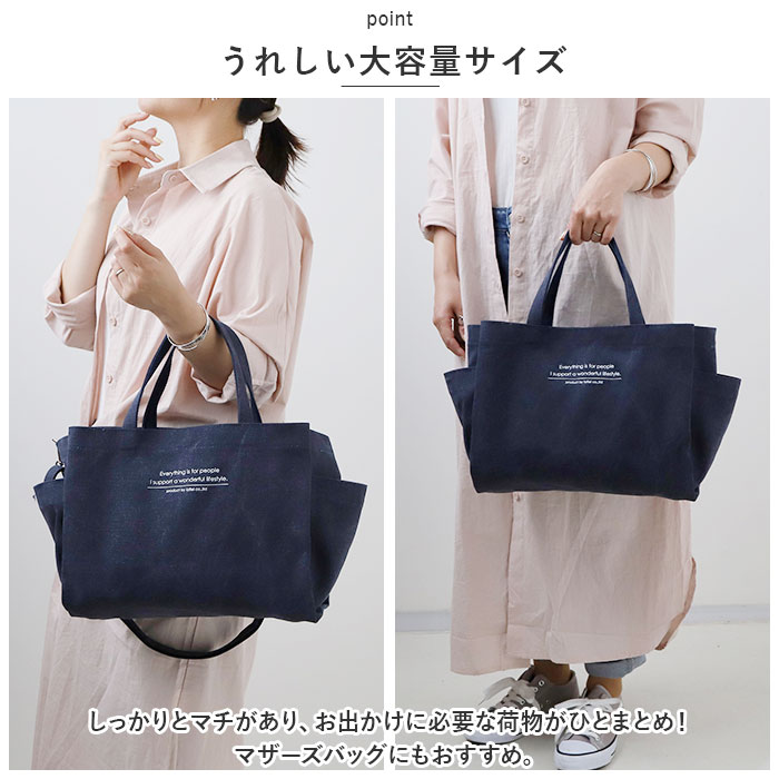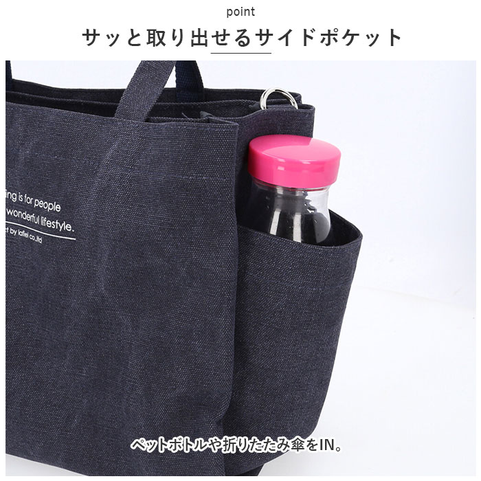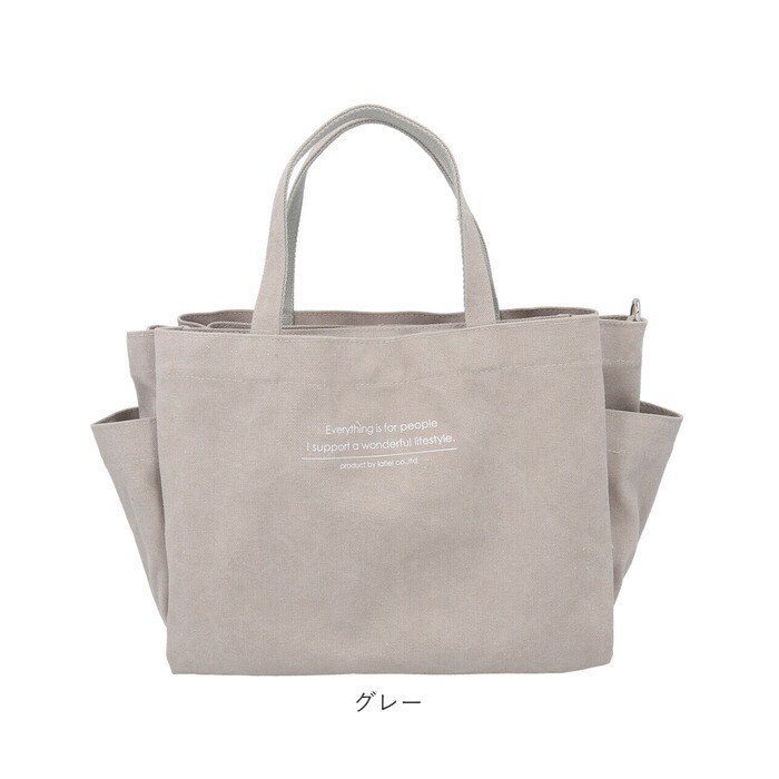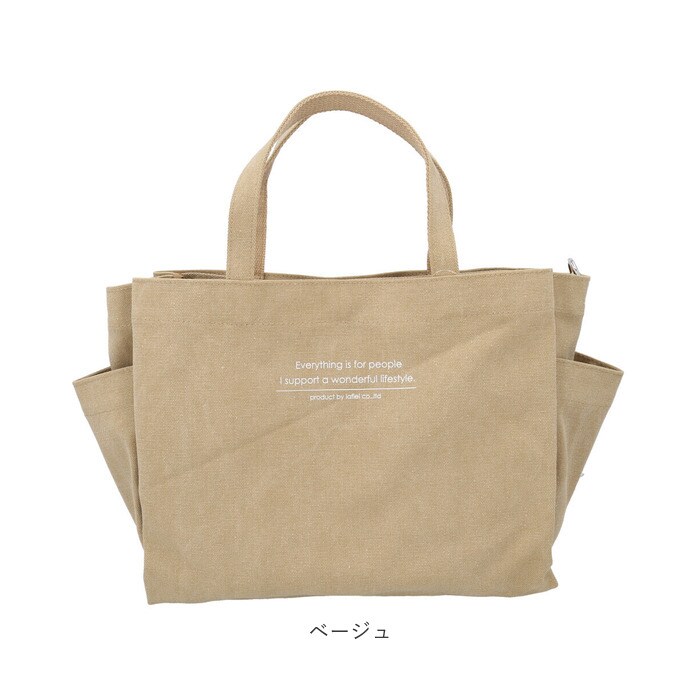 | 商品説明 | Lafiel(ラフィール)で人気のアソートメントシリーズから、英字プリント大容量2WAYトートバッグが登場。【大人のおしゃれ感】ナチュラルな風合いのコットンキャンバス生地に英字ロゴをプリント。シンプルでデイリー使いしやすいデザインが魅力。【持ち方を選べる2WAYタイプ】手持ちではもちろん、長さ調節可能なショルダーベルトを取り付けて、肩掛けや斜め掛けもOK。【うれしい大容量サイズ】しっかりとマチがあり、お出かけに必要な荷物がひとまとめ!マザーズバッグにもおすすめ。【使い勝手抜群】取り外し可能な底板付きで、荷物を安定した状態で持ち運び可能。自立するので出し入れラクラク。【天ファスナー開口】メインルーム開口部は天ファスナー式。中身がこぼれ落ちにくく、プライバシーを確保。【B5サイズ対応】内側はB5サイズのノートが横向きにすっぽり収まるサイズ感。【便利な両アオリポケット】外側両面に、マグネットボタン式のアオリポケットを装備!仕切り収納でラクラク整理整頓♪【小物が迷子にならない!】メインルーム、アオリともに内ポケット付き。鍵やスマホ、サニタリーグッズなど細々とした小物の収納に。【サッと取り出せるサイドポケット】ペットボトルや折りたたみ傘をIN。【1つ持っていると安心】様々なシーンで活躍する万能アイテム!持っていて損なし★【ポケット仕様】メインルーム:ファスナーポケット×1、オープンポケット×2前面:マグネットボタン式あおりポケット×1(内側にオープンポケット×1)背面:マグネットボタン式あおりポケット×1(内側にオープンポケット×2)サイド:オープンポケット×2 |