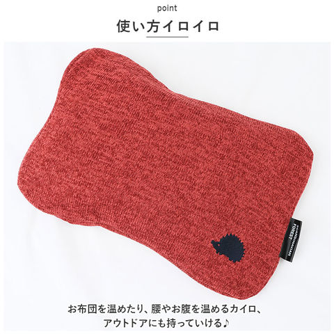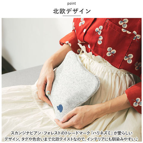 | 商品説明 | ハリネズミのロゴでお馴染みの「SCANDINAVIAN FOREST(スカンジナビアン・フォレスト)」から、インテリアにもなる「蓄熱式湯たんぽ」が登場。【北欧デザイン】スカンジナビアン・フォレストのトレードマーク「ハリネズミ」が愛らしいデザイン。タグや色合いまで北欧テイストなので、インテリアにも馴染みやすい♪【蓄熱式でエコ】面倒な水の入替が不要で衛生的。蓄熱後はコードを外して繰り返し使えるのでエコ。【コードレス仕様】コードレスなので、いろいろな場所に持ち運んで使える◎【使い方カンタン】20分程度の蓄熱完了。自動で通電を停止してくれるから安心。【安全を確保】3種類の安全装置付きで、異常が発生した際は検知。【温かさ継続】室温15度の布団内で使用した場合約8時間温かさが持続。【使い方イロイロ】お布団を温めたり、腰やお腹を温めるカイロ、アウトドアにも持っていける♪【衛生的】カバーは取り外して洗えるのでいつも衛生的。 |