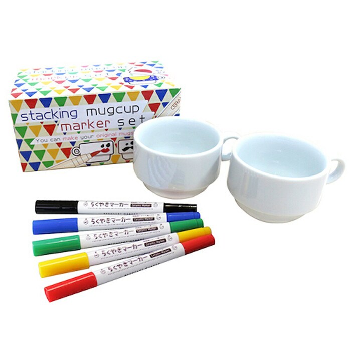 スタッキングマグカップマーカーセット【マーカー5色無地マグ】