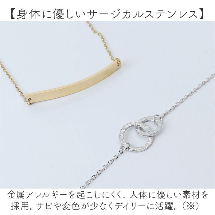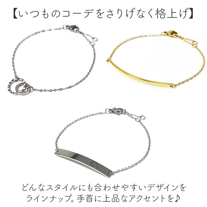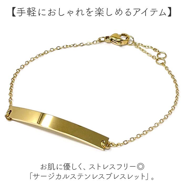 | 商品説明 | 【手軽におしゃれを楽しめるアイテム】お肌に優しく、ストレスフリー◎「サージカルステンレスブレスレット」。【身体に優しいサージカルステンレス】金属アレルギーを起こしにくく、人体に優しい素材を採用。サビや変色が少なくデイリーに活躍。(※)すべての方にアレルギー反応が出ない商品ではありません。【シンプルなカニカン着脱タイプ】留め具のつまみを使って装着。華奢な仕上がりで、付け心地も軽やか。【いつものコーデをさりげなく格上げ】どんなスタイルにも合わせやすいデザインをラインナップ。手首に上品なアクセントを♪ |
