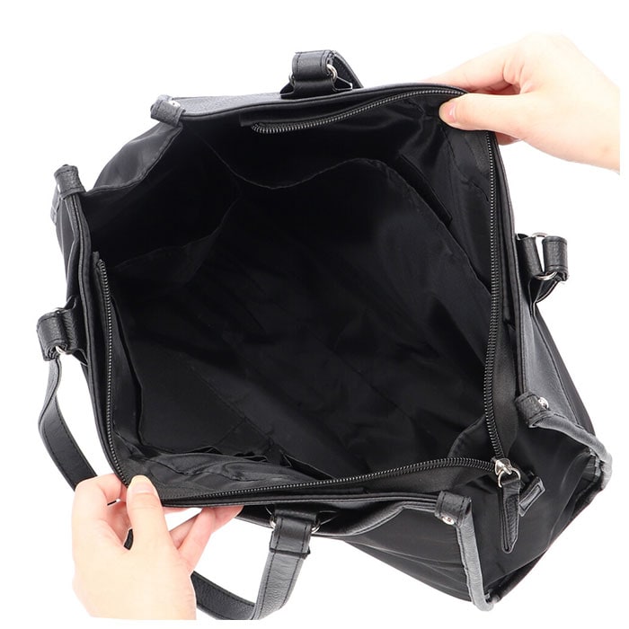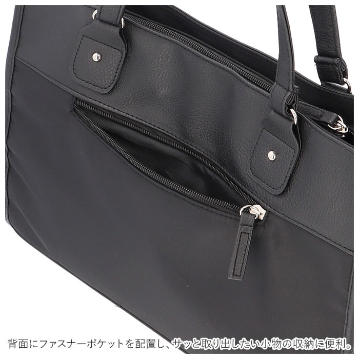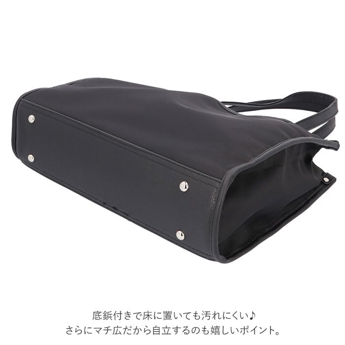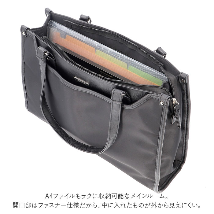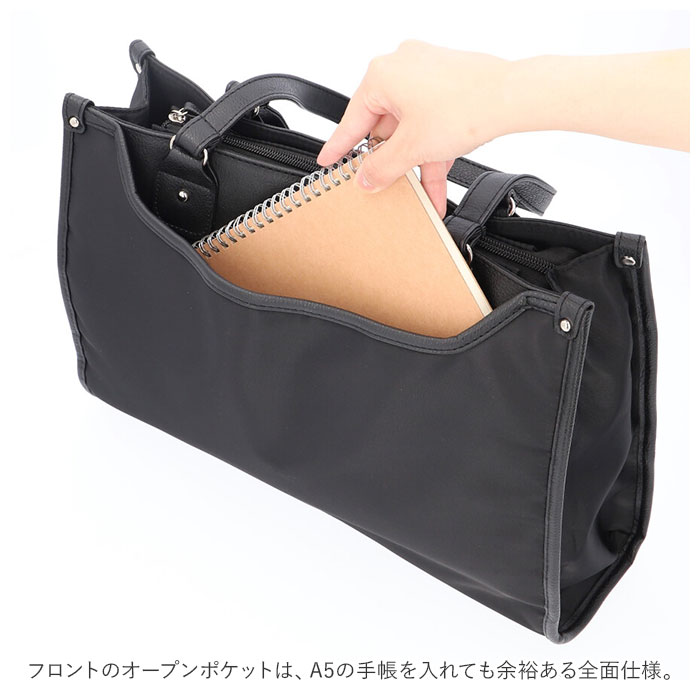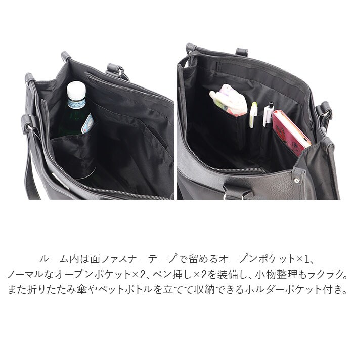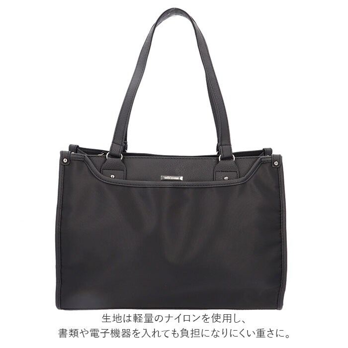 | 商品説明 | デイリーユースにおススメな「ESCA 軽量 ビジネスバッグ」が新発売。生地は軽量のナイロンを使用し書類や電子機器を入れても負担になりにくい重さに。A4ファイルもラクに収納可能なメインルーム。ルーム内は面ファスナーテープで留めるオープンポケット×1、ノーマルなオープンポケット×2、ペン挿し×2を装備し、小物整理もラクラク。また折りたたみ傘やペットボトルを立てて収納できるホルダーポケット付き。開口部はファスナー仕様だから、中に入れたものが外から見えにくいのも嬉しい。フロントのオープンポケットは、A5の手帳を入れても余裕ある全面仕様。背面にファスナーポケットを配置し、サッと取り出したい小物の収納に便利。底鋲付きで床に置いても汚れにくい♪さらにマチ広だから自立するのも嬉しいポイント。サラッとスーツやオフィスカジュアルに馴染むツヤ感♪どんなビジネスコーデにも合わせやすいアイテム。 |