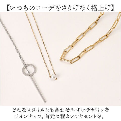| 商品説明 | 【手軽におしゃれを楽しめるアイテム】お肌に優しく、ストレスフリー◎「サージカルステンレスネックレス」。【身体に優しいサージカルステンレス】金属アレルギーを起こしにくく、人体に優しい素材を採用。サビや変色が少なくデイリーに活躍。(※1)すべての方にアレルギー反応が出ない商品ではありません。【シンプルなカニカン着脱タイプ】留め具のつまみを使って装着。サッと留めやすく、安定感も。(※2)001シリーズは、長さ調節不可です。【いつものコーデをさりげなく格上げ】どんなスタイルにも合わせやすいデザインをラインナップ。首元に程よいアクセントを。 |
