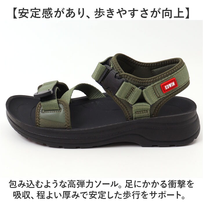 EDWIN レディース スポーツサンダル EW5223【カーキ】【25cm】