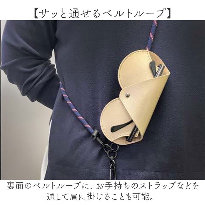 | 商品説明 | 【お手持ちのメガネをおしゃれに携帯】メガネやサングラスをスマートに持ち歩ける!「アイウェアポータブルケース」が新登場。【高級感のある大人のレザーケース】柔らかな手触りで、上品な印象の牛革製。流行などにも左右されず、長く愛用できるのが嬉しい!【出し入れスムーズなシンプル設計】留め金を穴に通すだけ。フラップが大きく開いて、サクッと出し入れOK。【開くと可愛らしいハート型♪】オープンするとハート型に!型押しのロゴなど、ディテールにもさりげないこだわりを。【かさばらないスリムなフォルム】薄型でコンパクト◎ミニバッグなどにも忍ばせやすく、シーンを選ばず活躍。【バッグなどに取り付けて持ち運び】バッグのハンドルに、チャームのように装着できるストラップ付き。取り外しも自在。【サッと通せるベルトループ】裏面のベルトループに、お手持ちのストラップなどを通して肩に掛けることも可能。【お気に入りを選べるカラー】性別や年代問わず選びやすい、落ち着きのあるカラー。色違いで揃えたり、ギフトにもおすすめ。 |
