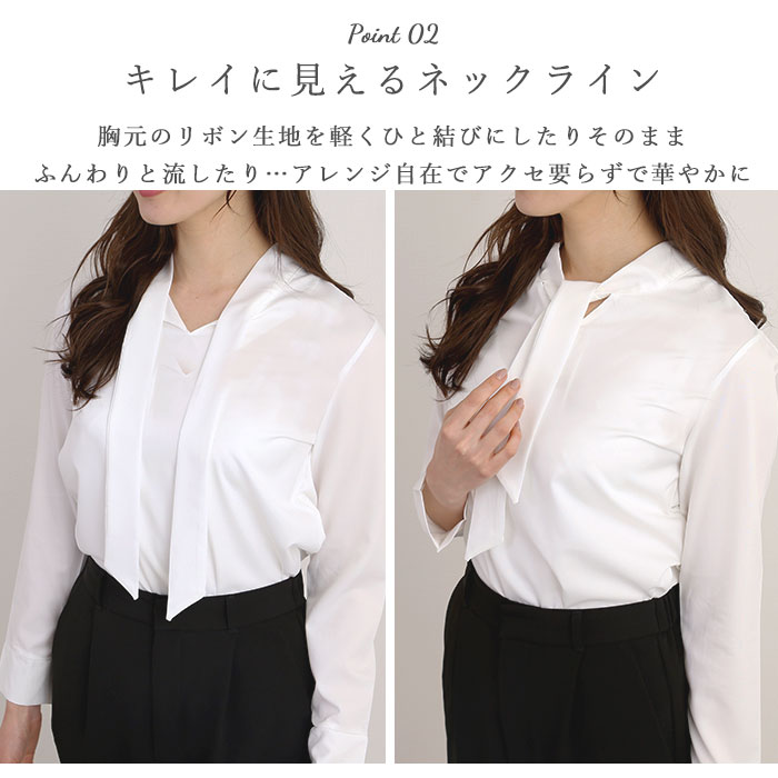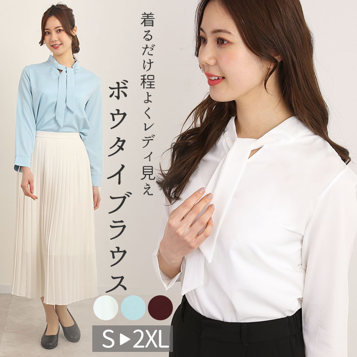 | 商品説明 | サラッと滑らかポリエステル素材が気持ちいいリボンブラウスが登場。スカートでもパンツでも合わせやすいデザインなので、エレガントにもカジュアルにも着こなしができる。胸元のリボン生地を軽くひと結びにしたりそのままふんわりと流すことで、柔らかな清潔感を演出。ボウタイスタイルにすればよりすっきりとフォーマルに着こなせる。普段着にもオフィスにも使える便利アイテム。お子様の卒業式・入学式にも着られるので1枚は持っておきたい。 |
