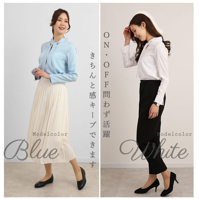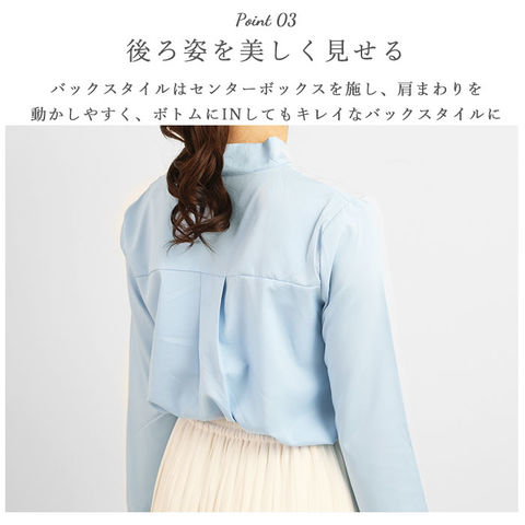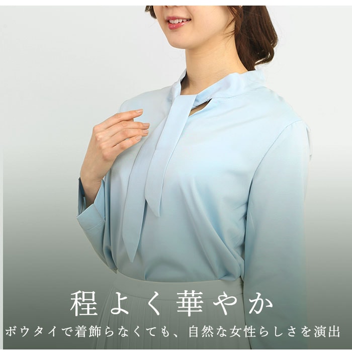 ボウタイブラウス f1045【ブルー】【Sサイズ】