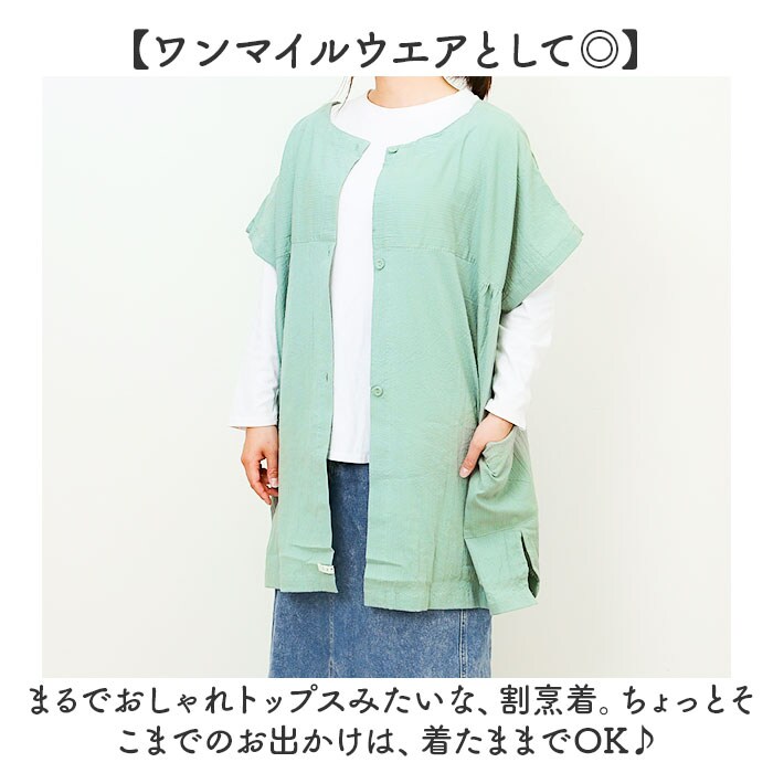 | 商品説明 | 【かっぽう着に見えないおしゃれさ♪】お気に入りを着て、毎日の気分をUP☆「FABORI サラハーフスリーブかっぽう着」が登場。【ワンマイルウエアとして◎】まるでおしゃれトップスみたいな、割烹着。ちょっとそこまでのお出かけは、着たままでOK♪【ライトな着心地で涼しく快適】サラッとした肌触りの、凹凸のあるサッカー生地を採用。速乾性のある、薄手の作りがGOOD。【スポっとかぶるだけ着用】腰ひも肩ひもなしの、かぶるだけ着用がラクチン!サッと着脱できるから毎日ストレスフリー。【気分に合わせて選べる2WAY】前後関係なく着られる、2WAY仕様。ボタンのありなしの着こなしを気分でチョイス!【便利なポケットを搭載】大きめで使いやすいポケットつき!スマホなどをサッと入れられるので、家事もはかどる!【いろんなシーンで大活躍☆】使用シーンを選ばないシンプルさ。家事、カフェや幼稚園などのお仕事からイベント時まで◎ |