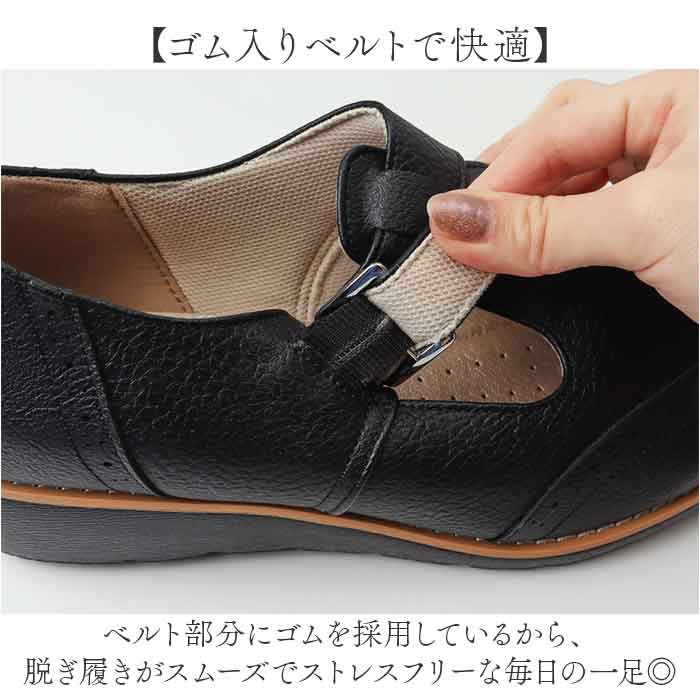 | 商品説明 | 【はくたびに気分が上がる】ゴム入りベルトで脱ぎ履きラクラク、柔らかインソールで歩きやすいTストラップシューズ。【Tストラップで足元華やか】クラシカルなTストラップデザインが、どんなコーデの足元にも自然と上品な華やぎをプラス。【ゴム入りベルトで快適】ベルト部分にゴムを採用しているから、脱ぎ履きがスムーズでストレスフリーな毎日の一足◎【ローヒールで幅広コーデ】フォーマルにもカジュアルにも合わせやすいローヒールが、毎日の着こなしの頼れる主役♪【やわらか底で疲れ知らず】柔らかなインソールが足裏をやさしく受け止め、長時間歩いても疲れにくい心地よい履き心地〇 |