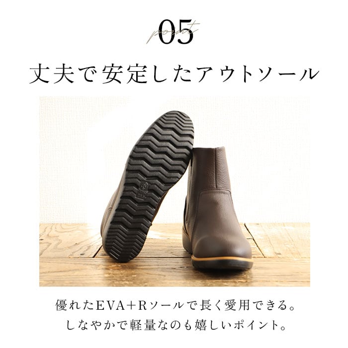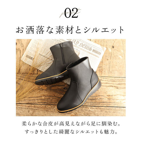 | 商品説明 | 【スッキリ細身シルエット】軽やかな履き心地のショートブーツ。【シンプルなデザイン】ボトムスにもスカートにも合わせやすく、デイリーコーデの強い味方♪【ソフトな合成皮革】やわらか素材で足への締め付けが少なく優しい履き心地。【脱ぎ履きがスムーズ】内側にファスナー付きで、急いでる時も楽々履ける♪【抗菌防臭機能付きインソール】クッション性のある中敷きは、長時間歩行を疲れにくくしてくれる。【優れたEVA+Rソール採用】長く愛用できる丈夫さが、安定した歩行をサポート。しなやかで軽量なのも嬉しいポイント。 |