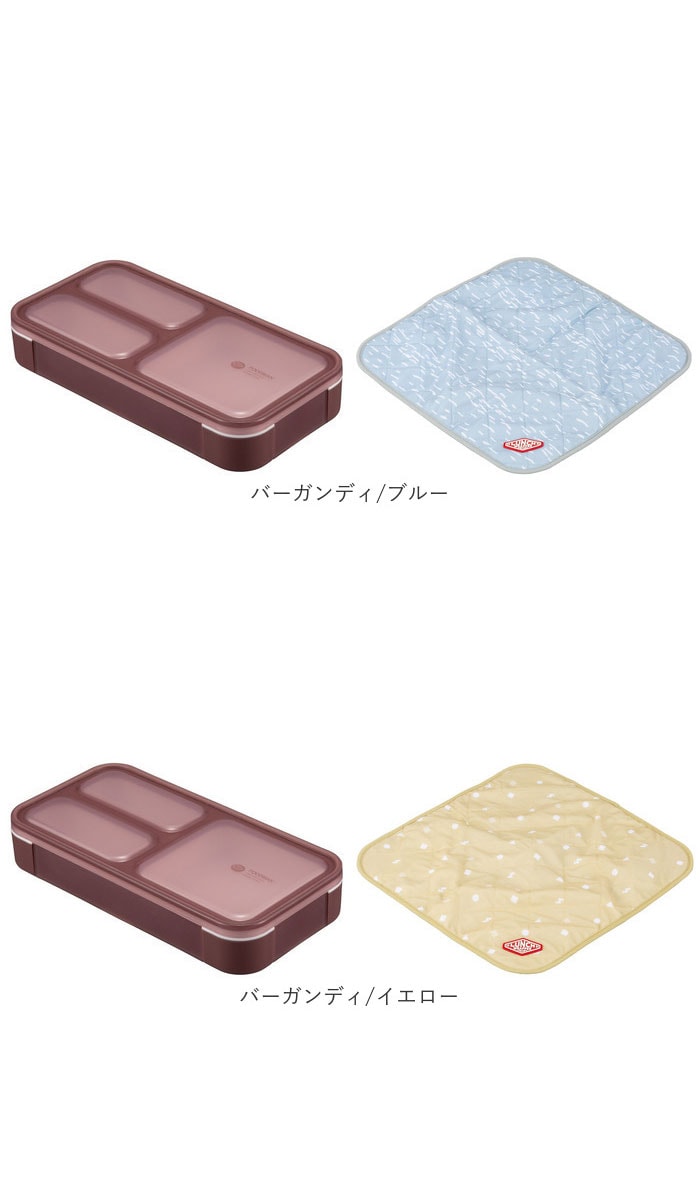 | 素材 | 【弁当箱400ml】 [フタ・本体]ポリプロピレン [パッキン]熱可塑性エラストマー 【ランチラッパー】 [表地、裏地]ポリエステル100% [面ファスナー]ナイロン100% |