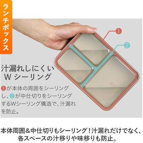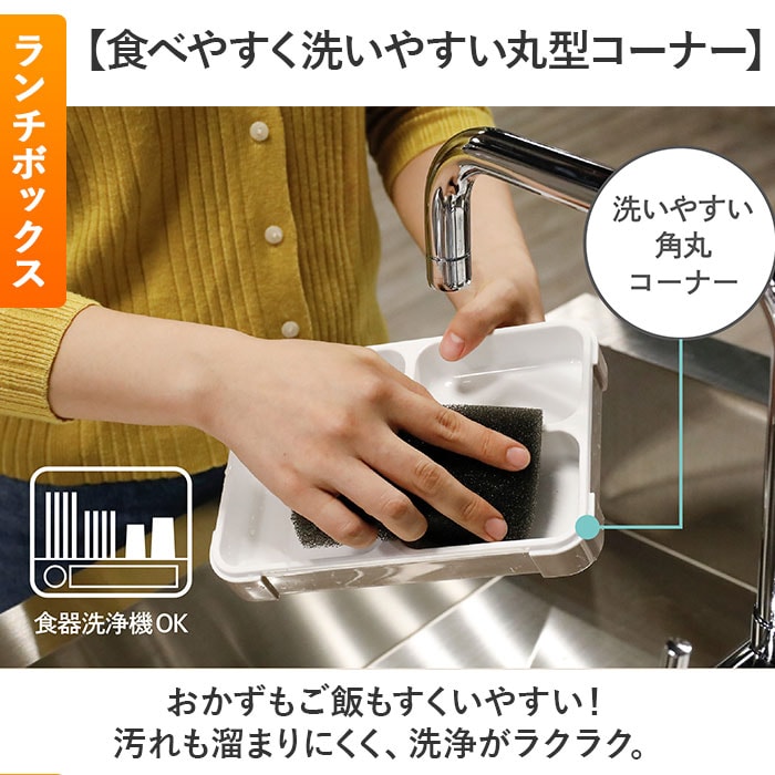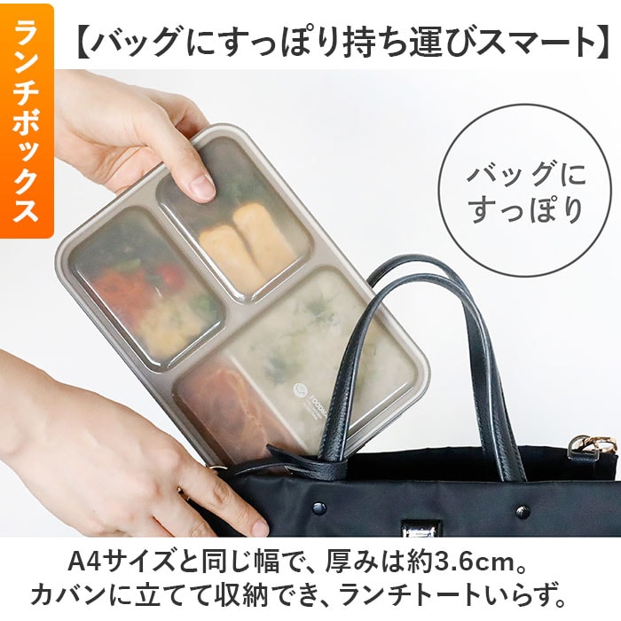| 商品説明 | 【毎日のお弁当を快適に持ち運べる!】大活躍の「FOODMAN 抗菌薄型弁当箱 600mlサイズ&ランチラッパー」2点セット。《抗菌薄型弁当箱 600ml》【バッグにすっぽり持ち運びスマート】A4サイズと同じ幅で、厚みは約3.6cm。カバンに立てて収納でき、ランチトートいらず。【汁漏れガード!Wシーリング構造】本体周囲&中仕切りもシーリング!汁漏れだけでなく、各スペースの汁移りや味移りも防止。【ふわっと盛っておいしさアップ】本体から上にはみ出た分もしっかり入る、ドーム形状の蓋。押し潰れを防いで見た目もキレイ♪【盛り付け簡単◎ワンプレート設計】一体型固定の中仕切りに、食材を分けて詰めるだけ。悩むことなく楽しく盛り付け☆【レイアウト自在!可動式中仕切り】可動できる中仕切りが1つ付属。おかずやご飯のレイアウトをお好みでチェンジ。(※1)可動式中仕切りにシーリング機能はついておりません。【男性も女性も使いやすいサイズ】コンパクトなフォルムだけど、容量はたっぷり600ml。お茶碗約3杯分が入るサイズ感。(※2)お茶碗1杯を約180mlとして計算した場合の容量です。【見栄えがアップするホワイトカラー】内側器部分は、鮮やかな食材の色を際立てる白色。ワンプレートディッシュのような仕上がり。【食べやすく洗いやすい丸型コーナー】おかずもご飯もすくいやすい!汚れも溜まりにくく、洗浄がラクラク。【一体パッキンで取り外す手間いらず】蓋とパッキンが一体成形。蓋との間に汚れが入りにくく、洗う時もパッキンはそのままでOK。【オフィスでも熱々ごはんを味わえる】蓋を外して電子レンジでの温め可能。温め直せば、いつでもあったかごはんを楽しめる!【お手入れしやすく衛生的】抗菌加工済み&うれしい食洗機対応。忙しい毎日の味方。【4点ロックでしっかり固定】・4ヶ所に配置されたロック。漏れにくく、立てて待ち運べるからカバンの中でかさばらない! |