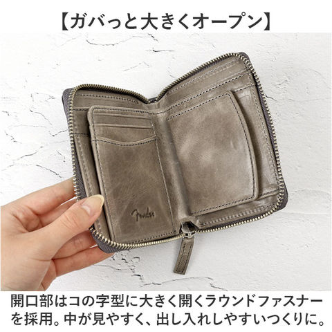 | 商品説明 | 【ギターのような革財布】エレキギター界のトップブランド「Fender」こだわりの二つ折り財布が登場。【Fender】1946年、レオ・フェンダー氏によって南カリフォルニアで創設された世界的楽器製造メーカー。【国産の牛革を使用】しっとりと柔らかく、ハリとコシのある牛革は耐久性にも優れ、使い込むほどに風合いが増す。【ギターのような仕上がり】エレキギターの代表格である「Stratocaster」のボディカラーをモチーフにしたデザイン。【ガバっと大きくオープン】開口部はコの字型に大きく開くラウンドファスナーを採用。中が見やすく、出し入れしやすいつくりに。【スッキリまとめて収納可能】・BOX型の小銭入れ、札入れ、カードポケットやフリーポケットもあり収納力抜群!【ギター好きな方へのギフトにも】フロントや内側の型押しロゴがアクセント。年代問わず使えるシンプルで落ち着きのあるデザイン。【ポケット仕様】内側:小銭入れ×1、カード入れ×5、フリーポケット×2、札入れ×2 |