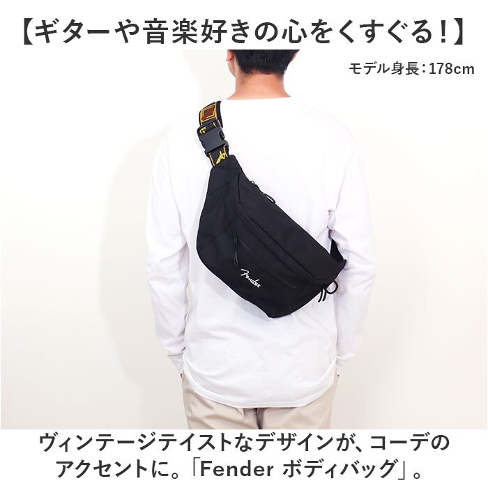 | 商品説明 | 【ギターや音楽好きの心をくすぐる!】ヴィンテージテイストなデザインが、コーデのアクセントに。「Fender ボディバッグ」。【音楽好き必見Fenderアイテム】フェンダーストラップの代名詞”モノグラムストラップ”を再現して、ショルダーにアレンジ☆【持っていればヘビロテ間違いなし】軽量で強度の高い、コーデュラ610デニールポリエステル。撥水性もあり、色んな場面で活躍◎(※)完全防水ではありません。水滴や汚れを弾き、不意の雨には対応できますが、濡れた場合はすぐに拭き取ってください。【両手が空いて移動がラクラク】ショルダーの長さを調節して斜め掛け。自転車移動や、アクティブシーンでも快適。【バックルベルトでワンタッチ】バックル式で、ショルダーの着脱がいつでもスムーズ。【ガバっと開くダブルファスナー】左右どちらからもオープン!出し入れしやすく、ファスナーを閉じれば、プライバシーも確保◎【見た目以上に頼りになる収納力】A5や500mlペットボトルも横向きにすっぽり。必要な物はしっかりと収納できるサイズ感。【サクッと取り出せて迷子知らず】内側・外側合わせて3つのポケットと、Dカンを配置。バッグの中で小物を探す手間が不要。【お揃いで使えるユニセックス仕様】性別・年代問わず持ちやすいデザイン&カラー。贈り物にもおすすめ!【Fender-フェンダー】・1946年、レオ・フェンダーによって創設された世界的楽器製造メーカー。【ポケット仕様】内側:ファスナーポケット×1前面:ファスナーポケット×1背面:ファスナーポケット×1 |