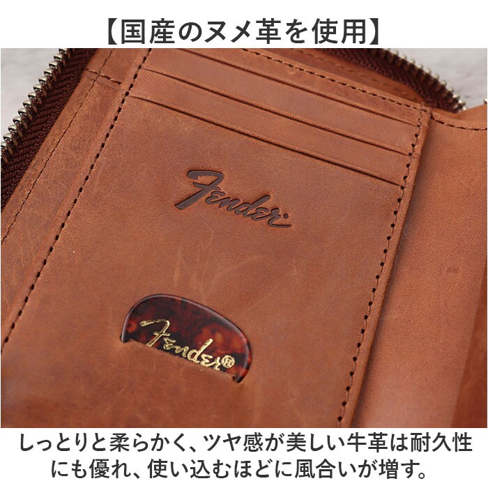 | 商品説明 | 【存在感抜群の革財布】エレキギター界のトップブランド「Fender」こだわりの「深札入れR型ファスナー」が登場。【Fender】1946年、レオ・フェンダー氏によって南カリフォルニアで創設された世界的楽器製造メーカー。【Fender好きに嬉しいセット】ギターストラップをイメージしたウォレットコードとピックがセットになった遊び心あるアイテム【国産のヌメ革を使用】しっとりと柔らかく、ツヤ感が美しい牛革は耐久性にも優れ、使い込むほどに風合いが増す。【異なる雰囲気が楽しめる】内側はナチュラルな雰囲気の革を使用。開くと雰囲気が変わる素材感が楽しめるのもポイント。【ガバっと大きくオープン】開口部はコの字型に大きく開くラウンドファスナーを採用。中が見やすく出し入れしやすいつくり【スッキリまとめて収納可能】・BOX型の小銭入れ、札入れ、カードポケットやフリーポケットもあり収納力抜群!【ギター好きな方へのギフトにも】フロントや内側の型押しロゴがアクセント。年代問わず使えるシンプルで落ち着きのあるデザイン【ポケット仕様】内側:小銭入れ×1、カード入れ×5、フリーポケット×2、札入れ×2 |