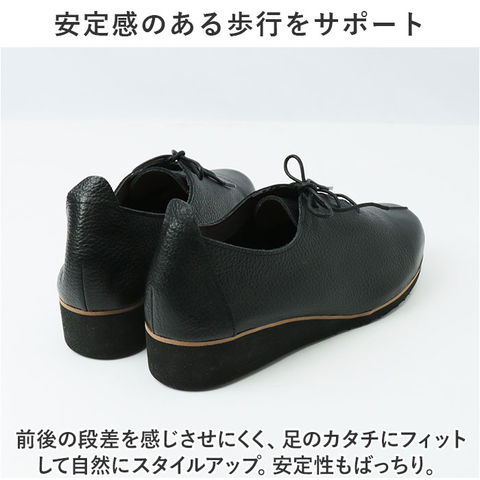 | 商品説明 | デイリー使いにぴったり。Figurino(フィグリーノ)レースアップシューズが新登場。【軽やかな履き心地でストレスフリー】ゆったり幅広かつ、美しいフォルムの4E木型。驚きの軽さでスニーカーのように歩きやすく、お出かけから旅行までマルチに活躍。【コーデを選ばない上品なデザイン】足を包み込むように柔らかな、日本製の牛革仕立て。表面は光沢を抑えたマットな質感&靴紐とカラーを統一することで、すっきりキマる♪【フィット感を高めるシューレース】紐の結び具合で多少のサイズ調節が可能。シューズと足が一体化するような着用感。【程よいクッション性のインソール】柔らかインソールが足裏にかかる衝撃をガードし、疲れを軽減。【屈曲性があり、歩きやすさが向上】足の動きに合わせて柔軟に曲がり、つま先がやや上を向いた形状。蹴り上げやすくつまずきにくい!【安定感のある歩行をサポート】前後の段差を感じさせにくく、足のカタチにフィットして自然にスタイルアップ。安定性もばっちり。【ご家族へのプレゼントにもおすすめ】年代問わず選びやすいカラーバリエーション。母の日や敬老の日の贈り物にも! |