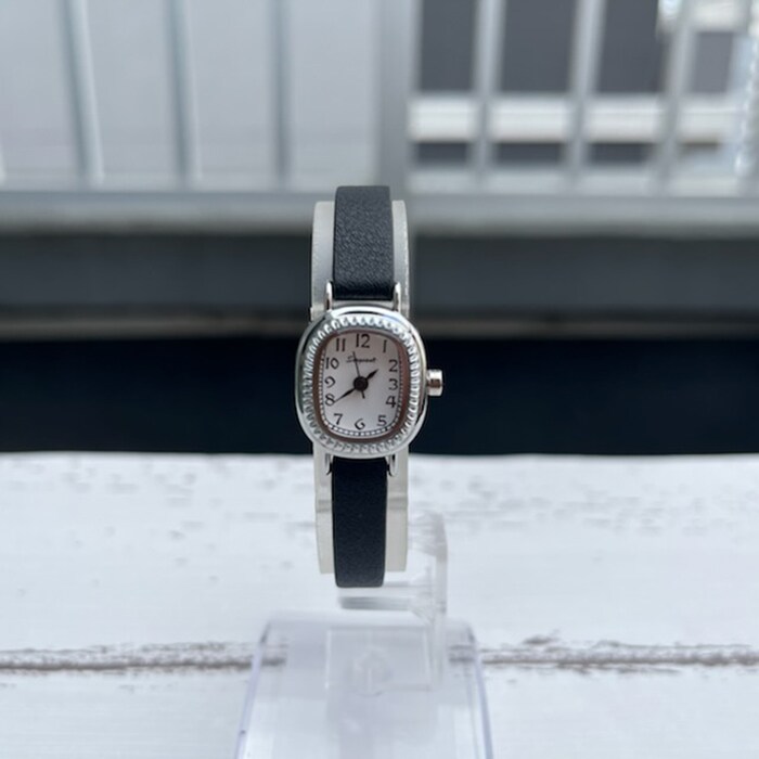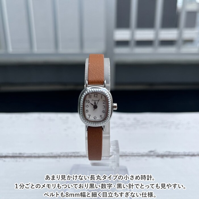 | 商品説明 | あまり見かけない長丸タイプの小さめ時計。1分ごとのメモリもついており黒い数字・黒い針でとっても見やすい。ベルトも8mm幅と細く目立ちすぎない仕様。 |