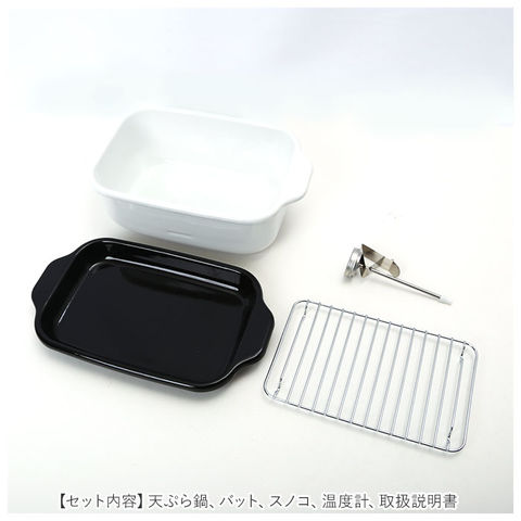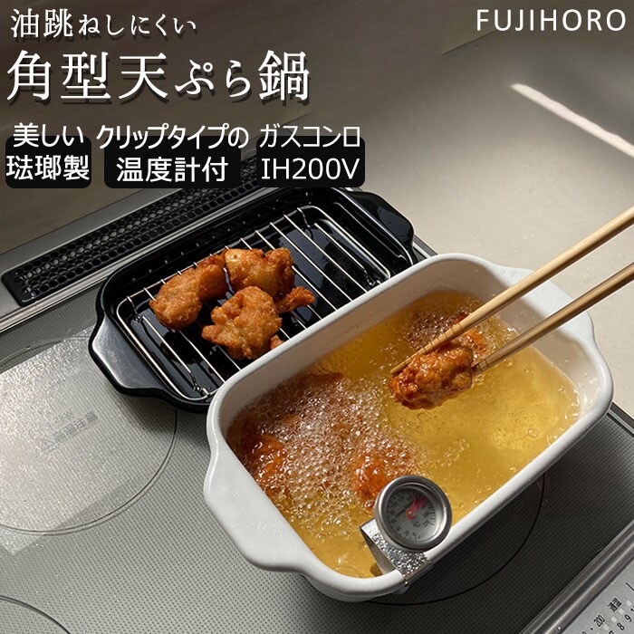 | 商品名 | 富士ホーロー 角型天ぷら鍋 温度計/バット/スノコ網付き |