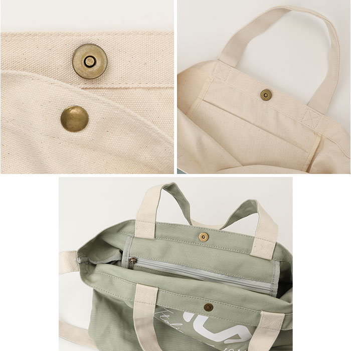 | 商品説明 | 【バイカラーとロゴが可愛い】・2タイプから選べる!FILAのロゴを組み合わせた2WAYトートバッグが新発売。【スポーツブランドが好きな方に】FILA(フィラ)ロゴが映えるデザインのラインナップ。※1【2タイプのデザインから選べる】大人可愛いバイカラータイプやシンプルなワンカラータイプの2タイプからチョイス♪【ざっくりと収納できる】書類ケースも収納可能なB4サイズのメイン収納。ザクザクと小物を入れられるのも魅力。【お弁当箱やポーチもin】マチ幅を設け、お弁当箱やポーチなどかさばるアイテムも一緒に入る。【サブバッグにも】大容量な作りでアウトドアや旅行シーンで使うサブバッグとしても活躍☆【内装ポケットも搭載】鍵など迷子になりがちな小物の定位置にピッタリな吊り下げタイプのポケットも搭載。※2【外ポケット付きタイプも】ハンカチや定期入れ、手帳などすぐに取り出せる外ポケット付きタイプもアリ◎※3【斜め掛けや肩掛けもOK】ショルダーベルト付きなので斜め掛け・肩掛けもでき持ち運びしやすい♪【男性も使えるカラーも】男性も使いやすいベーシックカラーもご用意。カップルでお揃いで使うのもオススメ♪【ポケット仕様】メインルーム・・・吊り下げタイプのポケット×1フロント・・・オープンポケット×1(バイカラータイプのみ)【注意事項】※1 タイプによりロゴデザインが異なります。※2 ワンカラータイプ:ファスナーポケット バイカラータイプ:オープンポケット(タイプによりポケット仕様が異なります。)※3バイカラータイプのみ外ポケットが付いています。 |