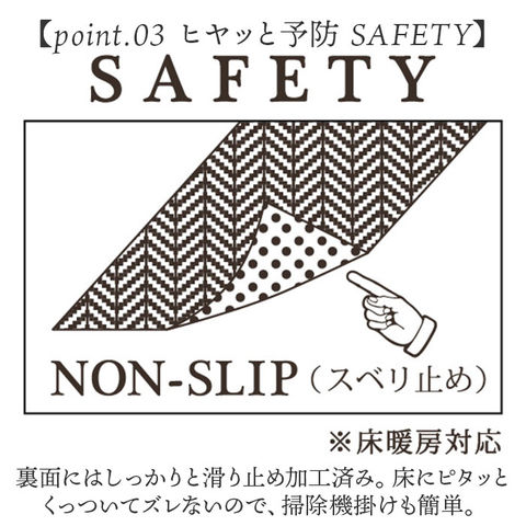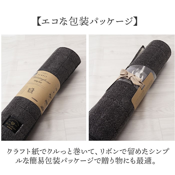 | 商品説明 | 【へリンボン柄で素敵なキッチン空間】繊細なへリンボン柄で、落ち着いたキッチン空間を演出!FLAFIT キッチンマット へリンボンIV」【まるでオーダーメイドの生地感】仕立屋のオーダーメイドスーツの生地をイメージした、味わい深いへリンボン柄が床にフィット!【シンプルで快適!4つのポイント】お洒落な生地感だけじゃない♪毎日キッチンに立つママさんに嬉しい「4つの工夫」をマットに凝縮!【point.01 床ピタFLAT】キッチンの引き出しに干渉しない、床にピタッとフラットな厚みを追及!つまづきにくく安全性も◎【point.02 くるっと柔らかFIT】薄手で柔らかく、くるくると丸めて洗濯ネットに入れれば、丸洗いOK!日常のお手入れがらくらく。【point.03 ヒヤッと予防 SAFETY】裏面にはしっかりと滑り止め加工済み。床にピタッとくっついてズレないので、掃除機掛けも簡単。【point.04 日々の暮らしをCLEANに】お掃除や洗濯がしやすいのに加え、抗菌防臭加工を施しいつでも清潔!品質にこだわった日本製品。【床暖房にも、もちろん対応】耐熱温度に配慮した素材で底面加工し、床暖房にも対応。キッチンだけでなくリビングにもお勧め。【キッチン床をワイドにカバー】システムキッチンのシンク前スペースをしっかりカバーできる、約50cm×180cmのワイドなサイズ感。【へリンボンって何?】ニシンの骨に似ていることから名づけられたへリンボン。織り地のような温かみのある表情が魅力。【インテリアに馴染む大人カラー】フローリングの床やお洒落な家具と相性がよく、主張し過ぎずお部屋に馴染むカラーラインナップ。※マット右下の織りネームの生地色は、カラーにより異なります。【エコな包装パッケージ】クラフト紙でクルっと巻いて、リボンで留めたシンプルな簡易包装パッケージで贈り物にも最適。 |