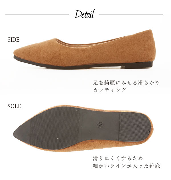 | 商品説明 | ぺたんこ楽々、スウェードタッチのシンプルでおしゃれなローヒールパンプス |