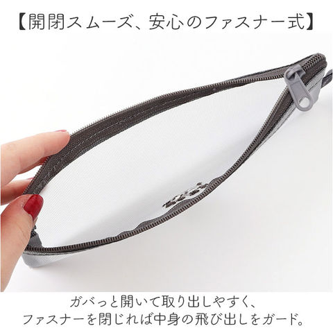 | 商品説明 | 【小物をまとめてすっきり持ち歩ける】細々したアイテムをIN♪持ち歩きに便利な「フラットメッシュポーチ」。【かさばりにくいフラットタイプ】バッグに忍ばせやすいスリムフォルム。軽量で、いつでもサッと手に取りやすい◎【開閉スムーズ、安心のファスナー式】ガバっと開いて取り出しやすく、ファスナーを閉じれば中身の飛び出しをガード。【マルチに使える万能アイテム】ペンなどのステーショナリー、リップなどのコスメ、コードなどガジェット類の小物収納に。【中身を確認しやすく型崩れもガード】中身が透けて見えるメッシュ素材。薄手ながら丈夫で、シルエットも崩れない!【手洗いできてお手入れラクラク】汚れが気になったら、自宅で手洗い可能、いつも清潔をキープできるのが嬉しい!【可愛らしいナチュラルデザイン】涼しげな風合いに、フロント刺繍がワンポイント。ちょっとした贈り物にもおすすめ。 |