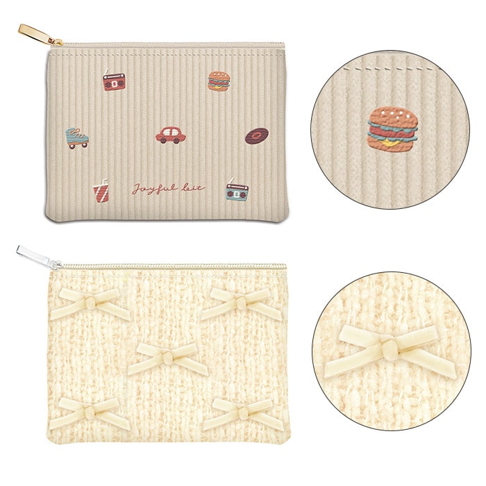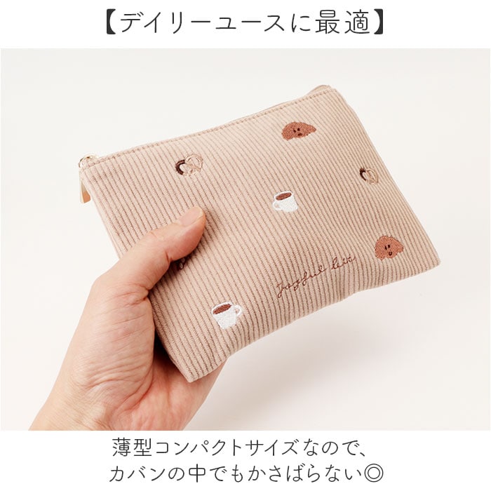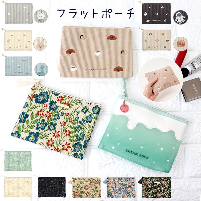 | 商品説明 | 【小物整理に便利】コスメなど小物をすっきり収納できるフラットポーチ♪【使いやすいファスナー式】サッと開け閉めでき、中身も見やすい○【デイリーユースに最適】薄型コンパクトサイズなので、カバンの中でもかさばらない◎【選べるバリエーション】刺繍や花柄織、メッシュ素材など可愛らしいデザインで、ちょっとしたプレゼントにもぴったり! |