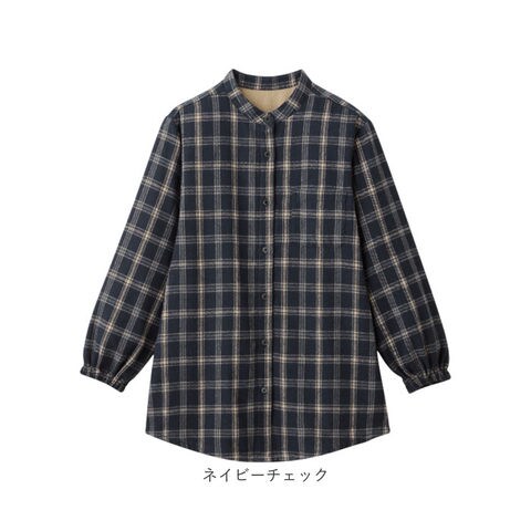 あったか裏フリースロングシャツ【ネイビーチェック】【LLサイズ】