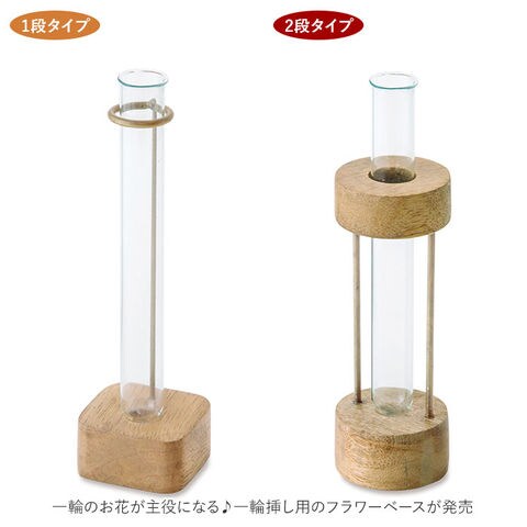 | 商品説明 | 一輪のお花が主役になる♪一輪挿し用のフラワーベースが発売。天然木とガラスを組み合わせた、ナチュラルで優しい雰囲気を演出してくれるフラワーベース。(※カラーによりデザインが異なります。ガラス管は取り外しが可能。)主張しすぎないので、どんなテイストのお部屋にもマッチ!さりげなく飾ることでインテリアのアクセントに♪ちょっとしたプレゼントにもおすすめ。 |