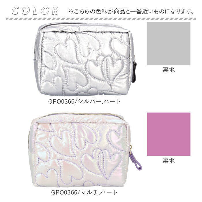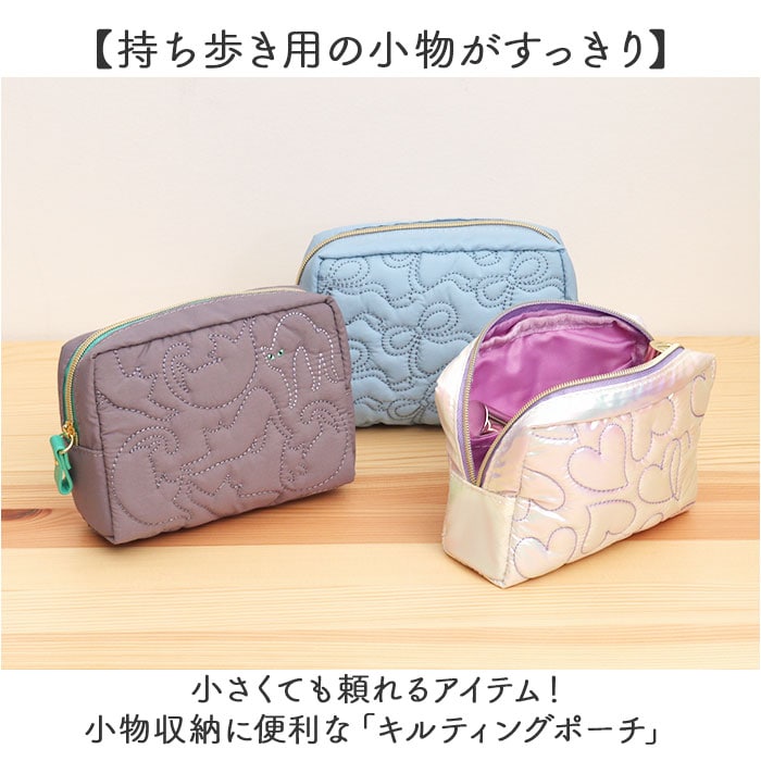 | 商品説明 | 【持ち歩き用の小物がすっきり】小さくても頼れるアイテム!小物収納に便利な「キルティングポーチ」。【バッグインしやすいコンパクト設計】ミニバッグにもすっぽり収まるサイズ感。サッと持ち出せるのが嬉しい♪【開閉スムーズ、安心のファスナー式】大きく開いて取り出しやすく、ファスナーを閉じれば中身の飛び出しをガード。【使い方は自分次第◎マルチに活躍】マチ付きで程よい収納力。コスメやサニタリー、ガジェットポーチとして重宝。【細々したものも迷子知らず】内側にポケットを1つ配置。ヘアゴムやあぶら取り紙など、小物をIN。【可愛く持ち歩けるキルティング仕様】ふんわりキルティングに、リボンなどのモチーフをプラス。年代問わず使えてギフトにも♪【ポケット仕様】内側:オープンポケット×1 |