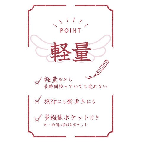 | 商品説明 | 【選べる刺繍デザイン】小花と猫、好みで選べる横型トートバッグ!【A4横収納の実力】A4サイズの書類が横向きにすっぽり入る設計で、通勤や習い事にぴったりな収納力◎【ファスナー開口で安心】開口部はファスナー付きで中身が見えないから、貴重品の持ち歩きも心配いらずの仕様〇【二つの刺繍が魅力】繊細な小花刺繍とゴールドの猫刺繍から選べるデザインで、自分らしさを表現♪【撥水素材で快適仕様】手触りのいいポリエステル素材は少々の水をはじいてくれるから、お出かけ中も心配なし。【折畳み傘ポケット付】内側に折畳み傘専用ポケットが付いているので、急な雨にもサッと対応できる! |