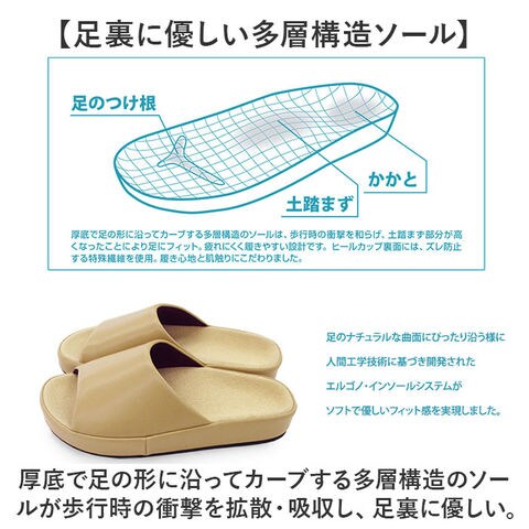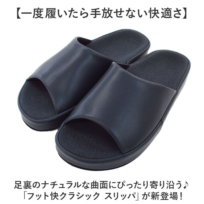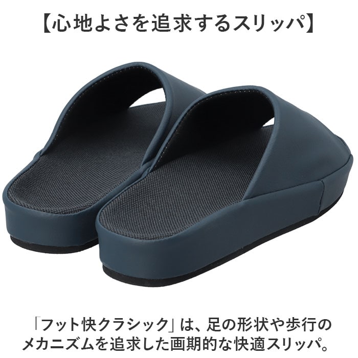 | 商品説明 | 【一度履いたら手放せない快適さ】足裏のナチュラルな曲面にぴったり寄り沿う♪「フット快クラシック スリッパ」が新登場!【心地よさを追求するスリッパ】・「フット快クラシック」は、足の形状や歩行のメカニズムを追求した画期的な快適スリッパ。【こだわりのエルゴノ・インソール】人間工学技術に基づいて開発されたエルゴノ・インソールシステムがソフトな履き心地のヒミツ。【足裏に優しい多層構造ソール】厚底で足の形に沿ってカーブする多層構造のソールが歩行時の衝撃を拡散・吸収し、足裏に優しい。【疲れにくくて、履きやすい】踵を覆うカップイン構造と土踏まずを高くすることでフィット感が向上。長時間履いても疲れにくい。【素足のままでもサラリと快適】足の甲の内側は滑らかな起毛生地で仕上げ、素足で履いても、サラリと気持ちのよい肌触り。【かかとがズレない小さな工夫】ヒールカップ裏面にかかとのズレを防止する特殊繊維を使用。かかとが安定し、快適な歩きやすさ。【滑りにくいアウトソール】厚さ5mmのしっかりとした底材が、フローリングや階段など滑りやすい床面をしっかりグリップ。【サッとひと拭きで簡単キレイ】足の甲のベルトやソール周りにはフェイクレザーを使用。汚れたらサッと拭いて、清潔さをキープ。【ご家族でリンクコーデも◎】カップルやファミリーでお揃いにできる23cm~27cmまでの幅広いサイズ展開も魅力のひとつ。※ご購入前に適応サイズをよくご確認ください。「23cm(適応サイズ約22~約22.5cm)」のように、サイズ表記より若干小さめのサイズ感となります。【安心のMade in Japan製品】江戸時代から草履製造が盛んな奈良県にて、ひとつひとつ手作りされている安心の日本製品。【おうち時間に溶け込むカラー】普段の気取らないスタイルにすっきり馴染む、落ち着きのあるクラシックカラーのバリエーション。 |