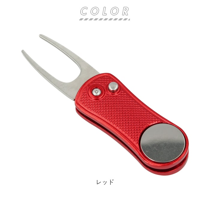 | 商品説明 | 初心者上級者問わず使えるディボット修復の必需品ゴルフフォークが登場。グリーンに挿してボール跡やマークを修復。ボタンを押せばワンタッチでカチッとフォーク部分が出てくる手軽仕様。(※勢いよく飛び出るのでご注意ください。)使わないときはケースに折りたたんで収納できるから、ポケットに入れておいてもケガする心配なく持ち運びできる。 |