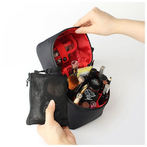 | 商品説明 | ブラシ等の長さがあるコスメの収納にぴったりなダブルファスナー式の縦型化粧ポーチが登場。メイン収納のまわりにはオープンポケット×6・メッシュポケット×1があり、リップ・ブラシ等のスティックコスメをきれいに入れられる。旅行先で散らかりがちな化粧品はもちろん、洗面用品・アメニティグッズも収納ができる◎中身の上部にはスナップボタン式の透明ポケットが付属。何が入ってるかすぐにわかるのがうれしい。持ち手が付いているので、持ち運びもラクラク。取り外し可能なミニメッシュポーチはファンデーションなどすぐに取り出したい物を入れておくのに便利。生地には撥水加工を施しているので、洗面所で使用して濡れてしまってもサッと拭けてお手入れ簡単♪カラー展開が豊富なので、お好みのカラーと一緒にお出かけしてみて♪ |