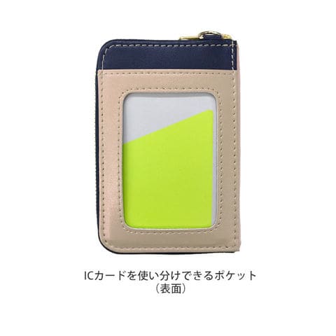 | 商品説明 | ICカード2枚使い分けできるおしゃれなパスケース。ちょっとした小銭や名刺などを入れるファスナーポケット付き。ファスナーポケットに入れたIC乗車券は反応しないのでスキミングも防止します。ファスナーポケットに仕切りはありません。 |