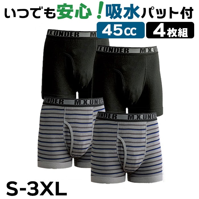 いつでも安心!吸水パット付ボクサーパンツ 4枚組 45cc【45cc】【Sサイズ】
