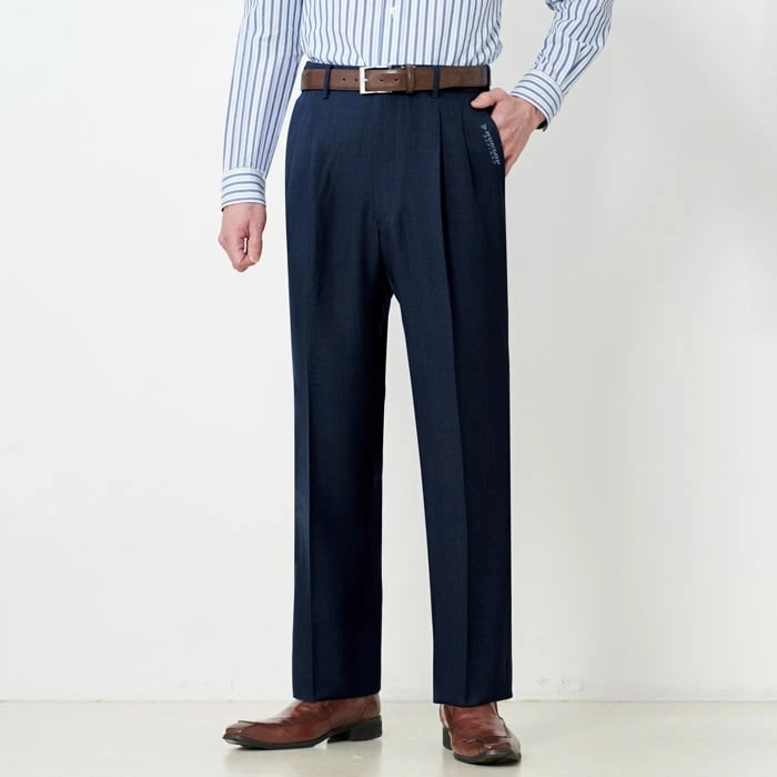 | 商品説明 | 上品な杢調便利な裾上げ済みウエストアジャスター付の快適スラックス。シンプルなデザインでどんな時でも合わせやすい、上品なスラックスです。高級感のある杢調の風合いと、ゆったり履けるツータック仕様。 |
