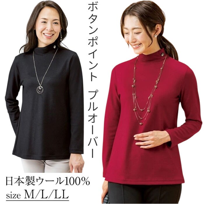 | 商品説明 | 上品な光沢感となめらかな肌触りの「ウール100%」素材を使用したカットソープルオーバー衿ぐりの大きめなボタンをアクセントにしたハイネックデザインプルオーバーカットソー素材なので伸縮性もあり、毎日着たくなる着心地の良さ |