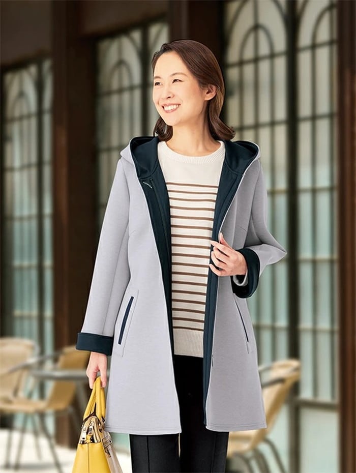 | 商品名 | 上品見えで柔らか!配色使いお出かけジャージコート |