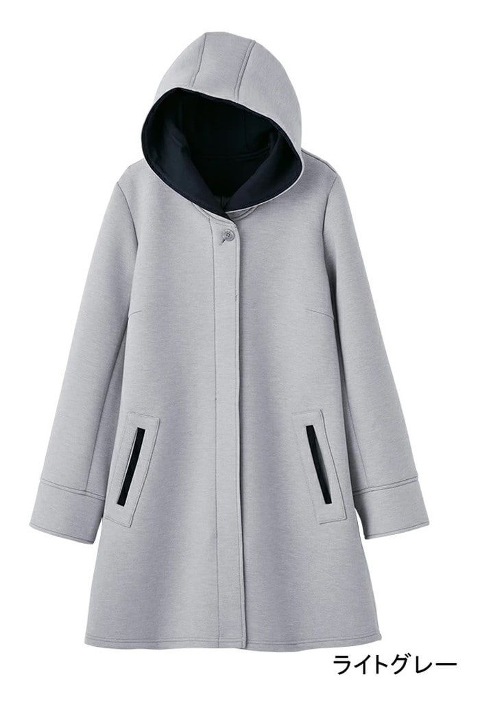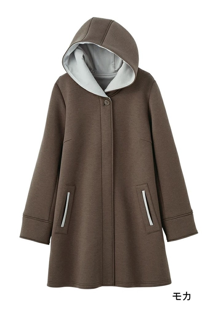 | 商品説明 | "ストレッチ感と膨らみを追求したダンボールニットで、軽くハリ感のあるニットコート 別布はポンチを使用し、フード内側やポケット口に配色使いで、スッキリ魅せ。伸縮性の高い、ポリエステルベースのダンボールニット素材で、シワになりにくいのが特徴。 一重仕立てで軽い仕上り。もっちりとした軽い生地感で着心地抜群。ボクシーシルエットのフーデットデザインで、フェミニンな雰囲気に。 フードは立体感があり、顏周りにボリュームを持たせたデザインで小顔効果。 |
