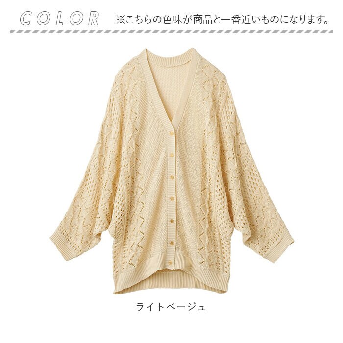 | 商品名 | ゆるっと体型カバー!透かし編みドルマンカーディガン |