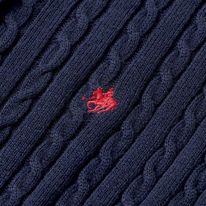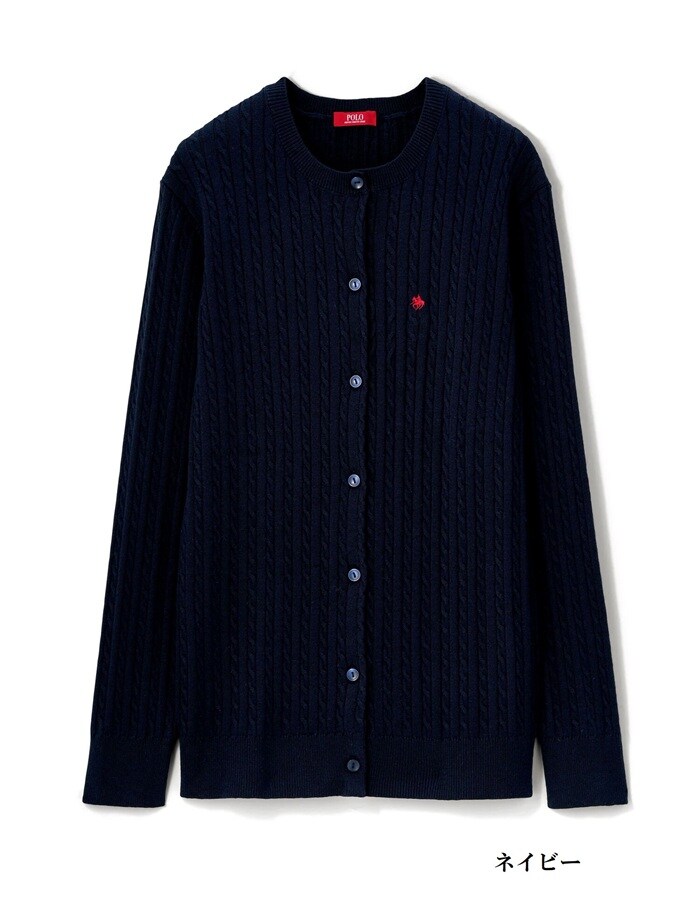 【ポロ・ビーシーエス】ケーブル柄ニットカーディガン【ネイビー】【Mサイズ】