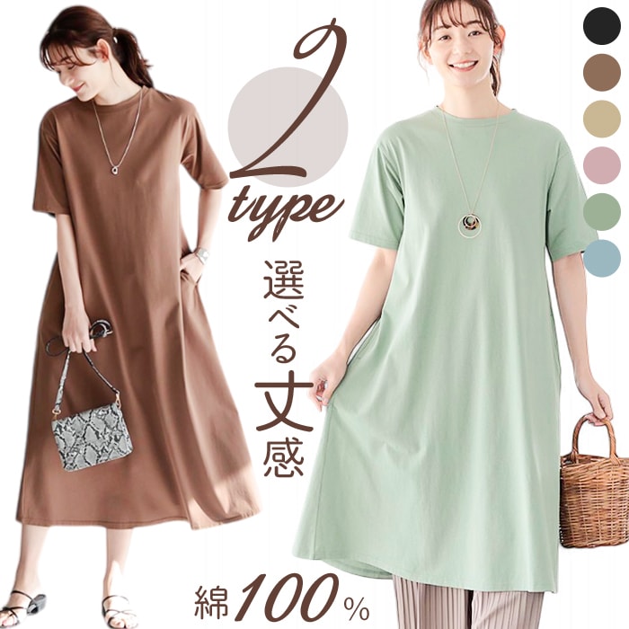 | 商品名 | 丈が選べる!綿100%Aラインカットソーワンピース |