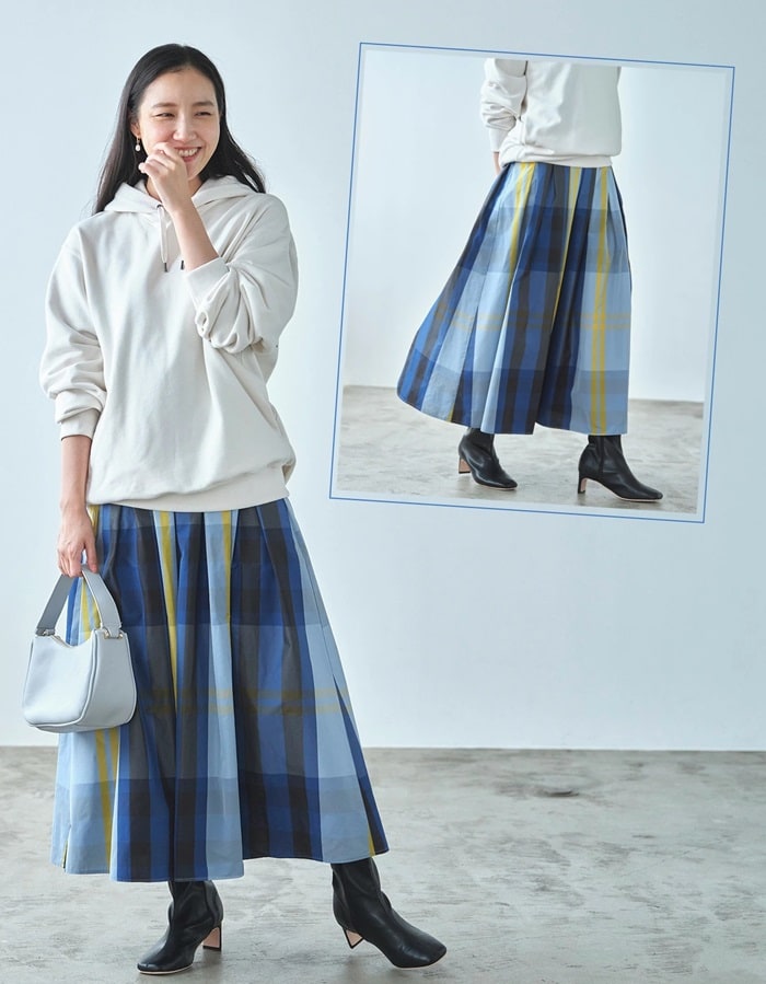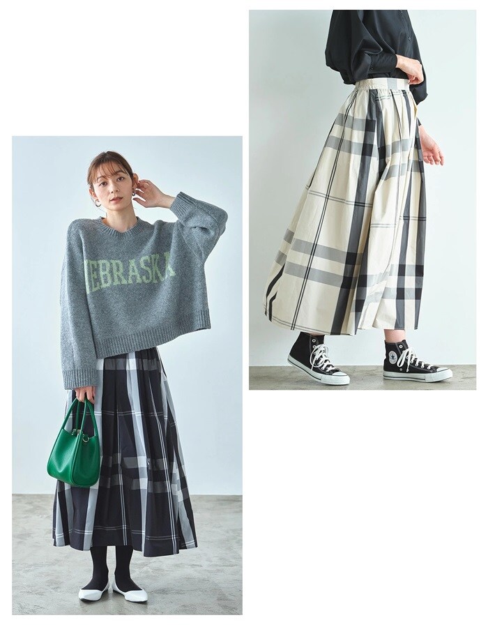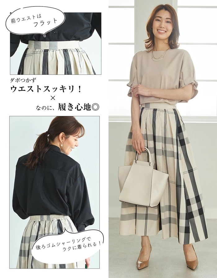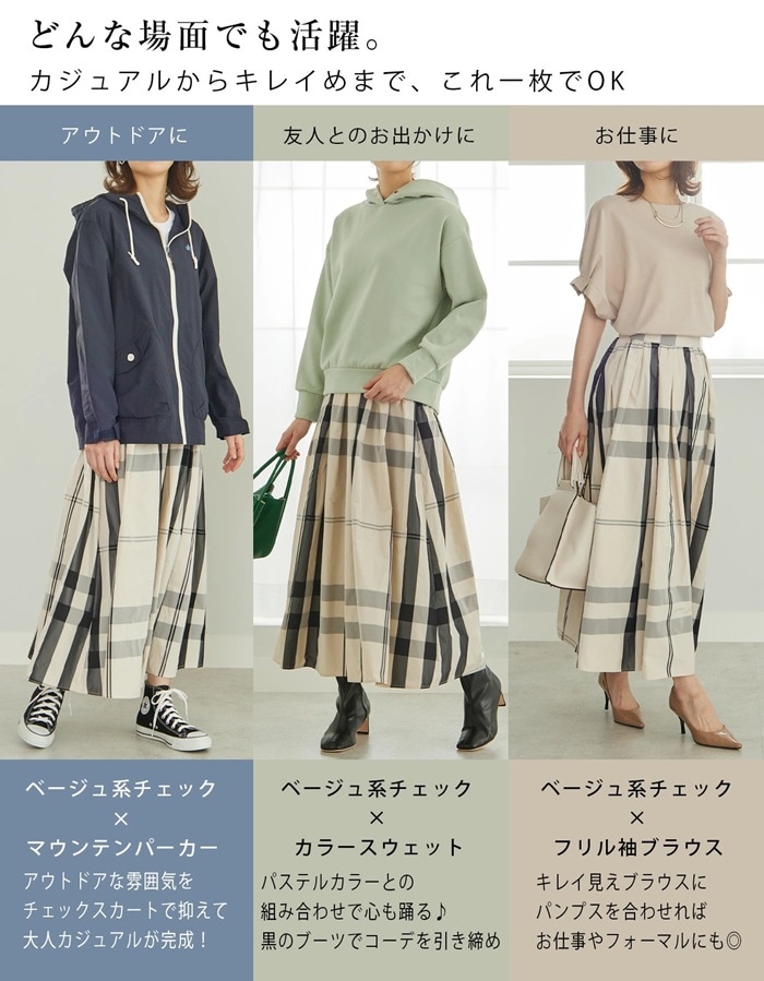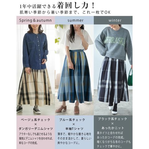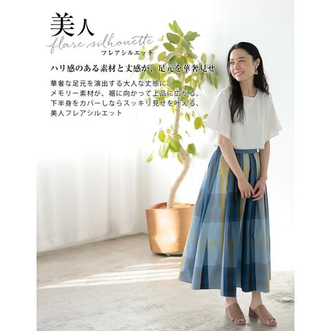 | 商品説明 | \秋映えトレンドボトムス/どんなトップスも受け止める!大柄チェックスカートこの秋も人気が続く大柄チェックを、たっぷりのフレアで大人可愛く。ほど良いハリ感のメモリー生地で高見え。キレイ目トップスのブラウスに合わせても、カジュアルなトレーナーに合わせても◎。ウエストゴムでらくちんなのに、フロントはフラットだから、トップスインしてもすっきり見え。 |