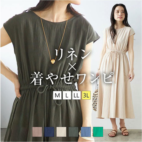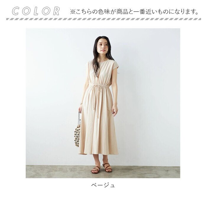 | 商品名 | リネン風ウエスト絞りロングワンピース |