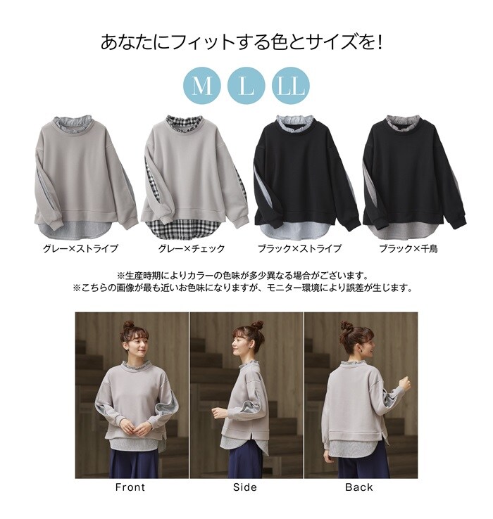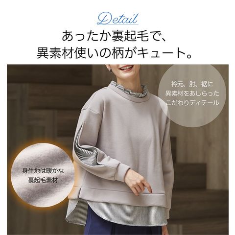 | 商品名 | ほっそり魅せるあったか裏起毛重ね着風プルオーバー |