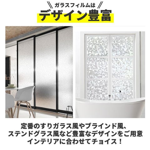 | 商品説明 | ガラス窓の目隠しや装飾に!手軽に貼れる「窓用フィルム」が新登場。接着剤をを使わずに静電気の力で吸着するので、簡単に貼り付けることができて、貼り直しも可能!素材は厚みがあり耐久性に優れた高品質PVCを採用。水に強いので普段のお手入れもラクラク♪リビングや寝室の窓など、外からの視線が気になるお部屋のプライバシーの保護に。デザイン性の高い柄が揃っているので、模様替えにもぴったり♪ |