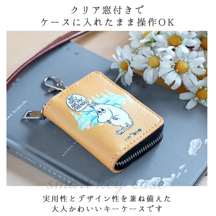 | 商品説明 | 世界中で愛されているキャラクター、ムーミンの絵柄がとってもキュートなスマートキーケース!ファスナーは大きく開くラウンドタイプで、スムーズにラクラク開閉。ケース内部に自動車のスマートキー(キーレスキー)がちょうど収まるサイズ。キーケース裏側の透明ウィンドウで、スマートキーをケースに収めたまま、ラクラク操作が可能!内側のリングにスマートキーを取り付けることで、スマートキーの紛失や落下の防止に!自宅の鍵や自転車の鍵など、通常の鍵をキーリングに取り付ければ、通常のキーケースとしても使用できる!小さいサイズのスマートキーを収納する場合は、ゴムバンドで固定すれば安定して収納可能。360度回転するカラビナで、バッグの持ち手やショルダーベルト、パンツのベルトループ等に取り付けて使用できる!シボ感のあるカラーフェイクレザーを使用した高級感のある仕上がり。ムーミン&リトルミイのほのぼのとした表情とナチュラルな雰囲気が可愛い♪ |