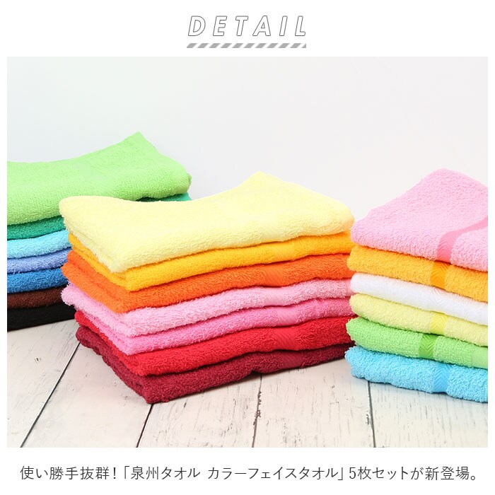 | 商品名 | 泉州タオル カラーフェイスタオル 2type 5枚セット |