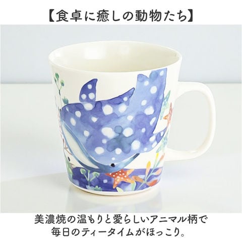 | 商品説明 | 【食卓に癒しの動物たち】美濃焼の温もりと愛らしいアニマル柄で毎日のティータイムがほっこり。【やさしいタッチの動物柄】森や海に暮らす動物たちを柔らかなタッチで描いた心なごむイラストが、いつもの食卓をあたたかく彩ってくれる〇【たっぷり飲める300ml】コーヒーもスープもちょうどいい300mlの容量で、朝のひとときからリラックスタイムまで幅広く活躍する万能サイズ!【電子レンジ&食洗機OK】電子レンジ・食洗機対応だから、いつでも温め直しができてお手入れも簡単♪【日本製の美濃焼】長い歴史を持つ美濃焼の技術で仕上げた日本製マグだから、大切な方への贈り物にもオススメ◎ |